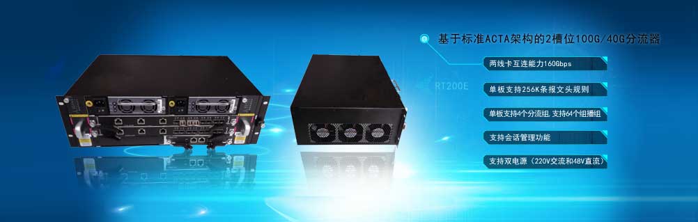 RT200設(shè)備是一款支持網(wǎng)絡行為審計系統(tǒng)、網(wǎng)絡內(nèi)容審計系統(tǒng)和入侵檢測系統(tǒng)的高速流量預處理平臺。